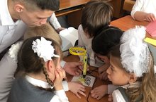 Интегрированный урок химии и технологии в 10 и 1 классах по теме" Синтетические материалы и современные технологии". Учащиеся 10 кл выступили с сообщениями о синтетических материалах их строении, свойствах и применении. Учащиеся 1 кл и 10 кл под руководством учителей Романовой А.В. и Узловой В.М. выполнили практическую часть по изготовлению бабочки из синтетических материалов при помощи 3 D ручки.