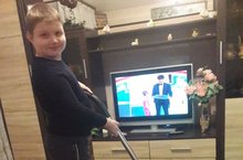 Владислав Богабцов,ученик 1а класса,помогает своей бабушке в уборке квартиры