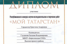 В декабре 2016 года проходил Республиканский конкурс научно - исследовательских и творческих работ «Мой Татарстан».