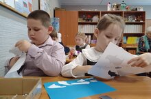 1А сыйныфында технология буенча ачык дәрес, анда балалар күңелле пингвиннар ясадылар, башлангыч сыйныфлар атналыгы кысаларында.