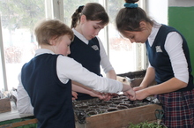 На уроках труда девочки приступили к пикировке рассады перцев и томатов для пришкольного участка.