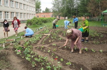 Цветы высаживают в школьные клумбы. В этом принимают участие все: и учителя, и сотрудники, и учащиеся школы.