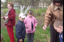 Саженцы яблонь приобрели родители учеников первого класса и вместе с детьми посадили их на пришкольном участке.