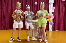 Сегодня лагере дневного прибывания прошло весёлое Гинесс-шоу. В начале мероприятия дети узнали немного из истории "Книги рекордов Гинесса" и её основателе. Перелистывая страницы книги, дети узнавали о необычных рекордах, которые записаны в ней и пытались сами установить свои достижения. По итогам игры, участники награждены медалями по следующим номинациям: "Шаропузеренадуватель", "Фасолесобиратель", "Наоднойногескакатель", "Длиннопластилинососискокататель", "Соломкопоедатель", "Ложкостакановыпиватель", "Башмакообуватель" и т.д.