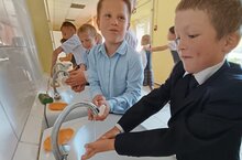 Һәр иртә температураны контрольдә тотудан, шулай ук Кулларны антисептик белән дезинфекцияләүдән башлана. Ашар алдыннан балалар кулларын һәрвакыт сабын белән юалар.