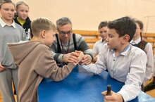 Армрестлинг — это борьба на руках, в ходе которой необходимо первым прижать к столу руку сидящего напротив соперника. Это вид спорта не входит в олимпийскую программу, однако пользуется большой популярностью во всем мире, в особенности в Северной Америке, Европе и на Кавказе.Сегодня в рамках месячника военно-патриотического воспитания состоялись соревнования по армрестлингу.