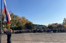 Сегодня, в такое прекрасное солнечное утро на площадке у школы собрались обучающиеся 2-11 классов и учителя. По традиции, линейка началась с поднятия Государственного Флага РФ и исполнения гимна Российской Федерации.