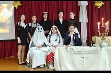 Обучающиеся 7-8 классов нашей школы в рамках кружковой внеурочной деятельности готовятся к ежегодному районному конкурсу театрализованной постановки на английском языке. В этом году ставят отрывок по сценарию произведения известного английского писателя и поэта Оскара Уайльда «Кентервильское привидение».