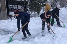 В рамках Месячника гражданско-патриотического воспитания 7а класс прнял участие в акции "Снежок" по очистке Памятника павшим.