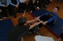Сегодня, в рамках Месячника гражданско-патриотического воспитания, прошли соревнования по мас-рестлингу среди 5-7 классов нашей школы. Мас-рестлинг - бесконтактное единоборство. Его правила очень просты: для победы спортсмену необходимо просто вырвать палку из рук или перетянуть соперника. Поединок длится до двух побед в двух или трёх раундах одного из борцов. Победа в схватке засчитывается, если одному из борцов удалось перетянуть соперника или если соперник выпустил палку.
