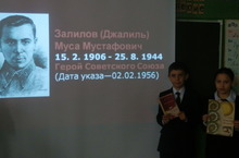 25 апреля в 4 классе был проведён классный час, посвящённый знаменитому герою-писателю Мусе Джалилю. Дети узнали о его жизни и творчестве, о его семье, как он жил и как посвятил всю свою жизнь своему народу. Каждый ученик выучил стих Мусы Джалиля и с большим удовольствием выступил перед классом