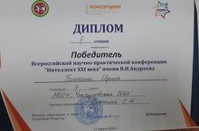 Блохину Ирину, ученицу 7 класса, занявшую 2 место во Всероссийской научно-практической конференции « Интеллект XXI века » имени В.И.Андреева.