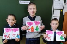 Ученики 5 б, 6 б класса сделали открытки поздравления с Новым годом для солдат России -участникам СВО