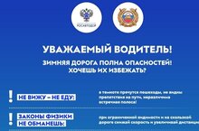 Напоминаем Вам, что в зимний период резко возрастает вероятность дорожно-транспортных происшествий.