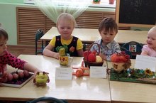 25 сентября 2017 года в младшей разновозрастной группе состоялся "Праздник Урожая". К детям пришли "зверушки" и вместе с малышами танцевали, играли, "собирали урожай". Также к этому дню родители приготовили поделки из овощей. / 2017 елның 25 сентябрь көнне кечкенәләр төркемендә “Уңыш бәйрәме” узды. Балалар янына “урман хайваннары” килделәр һәм нәниләр белән бергә уеннар уйнадылар, биеделәр, “уңыш” җыйдылар. Балаларның әти-әниләре бу көнгә поделкалар да ясап килде, поделкалар күргәзмәсе оештырылды.