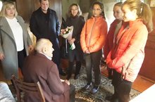 Волонтеры Учхозской СОШ поздравили с 90 летием долгожителя п. Дачное Смирнова Виктора Григорьевича. /Учхоз урта мәктәбе волонтерлары Дачный бистәсендә гомер итүче Смирнов Виктор Григорьевичны 90 яшьлек юбилее белән котладылар.