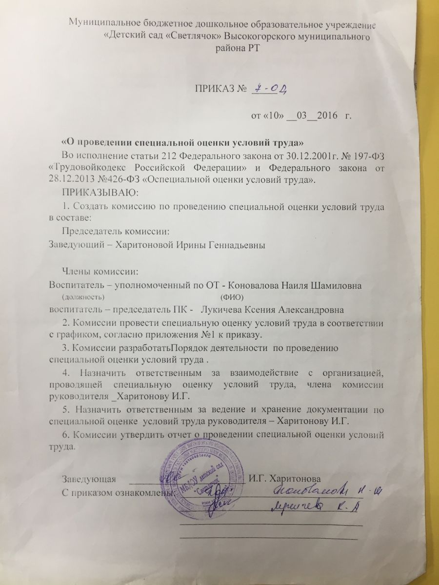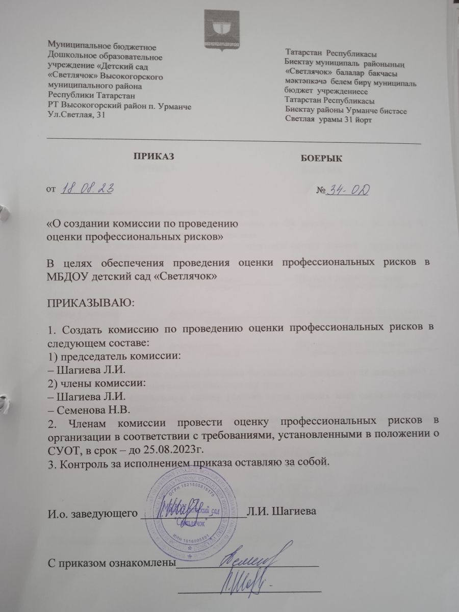 Приказ о создании комиссии по проведению оценки профрисков 2023г