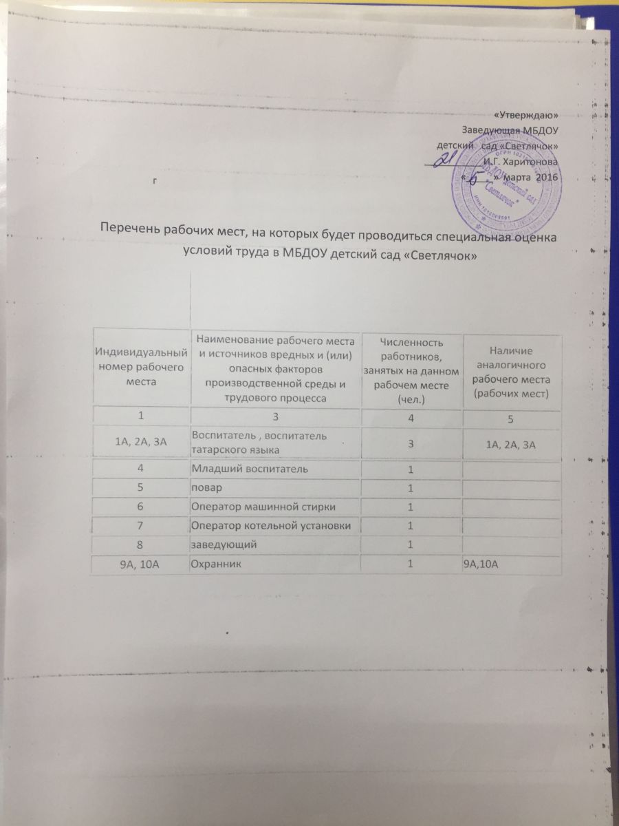 Перечень рабочих мест, подлежащих аттестации (СОУТ) 2023г