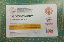Воспитатель нашего детского сада Ахмадуллина Лилия с 20ноября по 22 ноября прошла обучение по программе дошкольного образования "Акыллы уеннар" в международном мультилингвальном образовательном центре "Бала Сити".