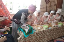 Бүген уртанчылар төркеме тәрбиячеләре балалар өчен "Татар халкының милли ашлары" дип аталган мастер-класс үткәрделәр. Кызлар нәкъ олылар кебек камыр җәйделәр, бәлеш ясадылар.