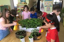 Төркемнәрдә тәрәзә төбендә балалар тәрбиячеләр белән берлектә яшелчәләр һәм чәчәкләр үстерәләр. Үсентеләрне карап үстергәндә балалар яшелчәләр турында белемнәрен киңәйтәләр һәм эш күнекмәләренә өйрәнәләр.