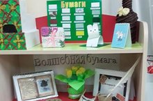 Мәктәпкә әзерлек төркеме тәрбиячеләре "Тылсымлы кәгазь" дигән мини -музей күргәзмәсе ясадылар. Бу музей балаларны кәгазьнең төрләре һәм сыйфатлары белән таныштыра. Балалар кәгазьдән ясалган әйберләр үрнәкләрен үз куллары белән ясадылар