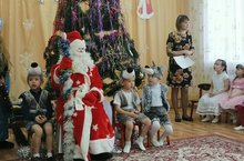 В старшей группе "Астра" на новогоднем представлении девочки танцевали танцы "Бабка ежка" , танец "Снежинки". Дед Мороз приехал на праздник, запряженный в карету с волками. Мальчики были "зайчатами". Баба Яга, как всегда, устраивала разные козни, но все обошлось благополучно. Дед Мороз и снегурочка раздавали подарки, дети рассказывали стихи, пели песни. водили хороводы.
