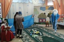 В нашем детском саду прошел месячник "Сделаем планету чистой!". В рамках этого месячника педагоги подготовили экологическую сказку "Нефтяная рыба" . Цель этой театрализованной деятельности - повышение экологической культуры воспитанников и родителей. Сказка повестует о том, что старик поймал рыбу. А рыба не хочет жить в море, потому что вся вода грязная, в мусоре. Рыбка просит старика забрать к себе домой жить в аквариуме. Появляется в сказке и Морской царь. Он возмущается тем, что люди совсем стали плохо обращаться с природой. Старик и старуха решают очистить море от мусора. Рыбка благодарит старика и старуху и уплывает в море.