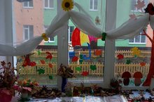 С помощью родителей в ясельной группе "Ромашка" сделали композицию "Осенняя красота на подоконнике".