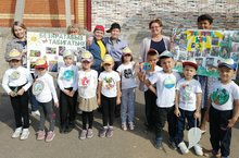 Бугенге акциядэ балалар табигатьне саклауга багышланган флешмоб башкардылар, плакатлар, буклетлар ярдэмендэ/