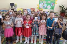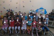 Уртанчылар төркеме балалары Сафиуллина Алсу Рашидовна алып килгән бүләкләр белән. Малыши средней группы со светоотражающими наклейками, которые подарила Сафиуллина Алсу Рашидовна. 22.03.2019