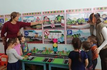 Воспитатель второй младшей группы Шарипова Э. Г. и логопед Усманова Э.А. в кабинете по изучению правил дорожного движения провели непосредственно-образовательную деятельность по теме "Осторожно! Дорога".