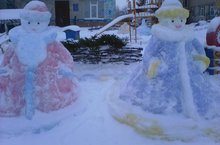 В МБДОУ Дубъязский детский сад "Гульчачак" все сотрудники принимали участие в подготовке к Новому году в детском саду. При входе на территорию детского сада слепили из снега фигуры Деда Мороза, Снегурочки, белого Мишки, Зайчика и символ наступающего года - Козу.
