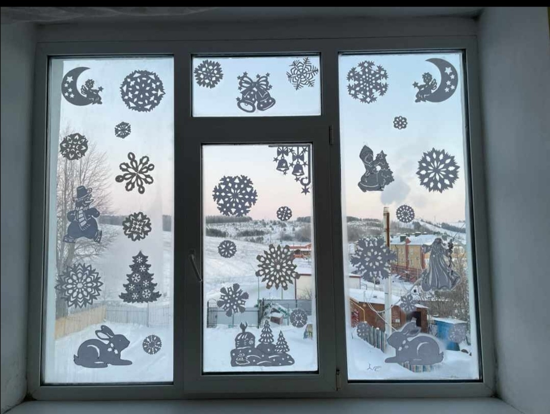 Новогоднее украшение окон. Яңа елга тәрәзәләр бизәлеше.