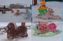 Во время новогодних праздников украшением территории школы стали снежные фигуры
