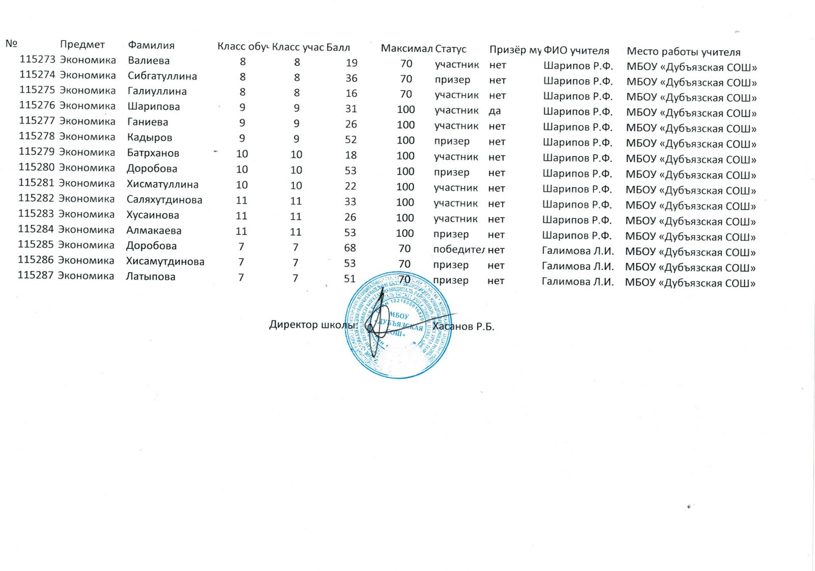 | Короткое название: | МБОУ «Дубъязская СОШ» |