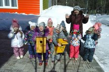Воспитанники детского сада приняли участие в проведении Дня птиц и повесили скворечники и кормушки для птиц.