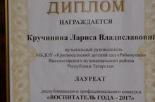 Музыкальный руководитель Кручинина Лариса Владиславовна стала лауреатом республиканского конкурса профессионального мастерства "Воспитатель года 2017" 17.03.2017