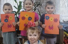 Сделали открытку, поздравляя наших мам.