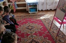 Мы с детьми пришли в сельскую библиотеку посмотреть мультфильм.