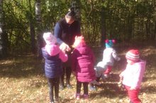 Буген без балалар белән агачлардан коелган төрле төстәге яфракларны җыйдык . Көзге табигатьнең матурлыгына сокланып карап тордык. Яфтакларны очырып уйнадык