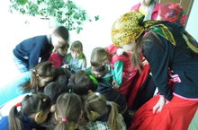 День второй. Задание - расколдовать снеговика. вначале дети узнали историю возникновения снеговика, потом нарисовали его портреты и написали небольшие рассказы о нём, а после этого началось спортивное состязание "Зимние весёлые старты". В конце дня - голосование