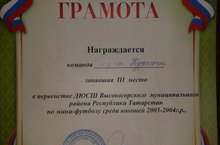 16 декабря в районе прошло первенство ДЮСШ по мини-футболу. Учащиеся нашей школы заняли почётное 3 место. Поздравляем!!!