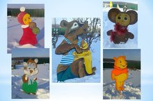 Снега в этом году выпало мало. Снежные фигуры делать не из чего. Но мы вышли из сложившейся ситуации: каждый класс смастерил любимого мультипликационного героя из фанеры. И вот что получилось. Сегодня возле школы можно встретить и Машу из мультика "Маша и медведь", и енота, и Винни Пуха, и Михаила Потапыча с бочёнком мёда, и Чебруашка ...