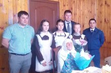 Сегодня в рамках проекта "Школьный сельский совет" ученики нашей школы совместно с Главой Куркачинского сельского поселения, заместителем Главы Высокогорского муниципального района и представителем прокуратуры Высокогорского муниципального района поздравили с 90-летним юбилеем жительницу нашего посёлка Хасанову Ф.Х. Члены администрации вручили юбилярше подарки, а наши девочки исполнили для неё песню и стихи.