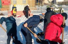 Отряд Юнармии совместно с Волонтерами Победы организовали уборку снега на территории Памятника Славы