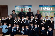 Сегодня передпервоклассниками выступили инспектор ДПС Гатауллин Р.И. Он рассказал им о правилах безопасного певедения на дорогах. В конце встречи вместе с командиром взвода ДПС Шайхиевым А.Ф. они вручили им световозвращающие значки. Встреча очень необходима и познавательная для учеников.