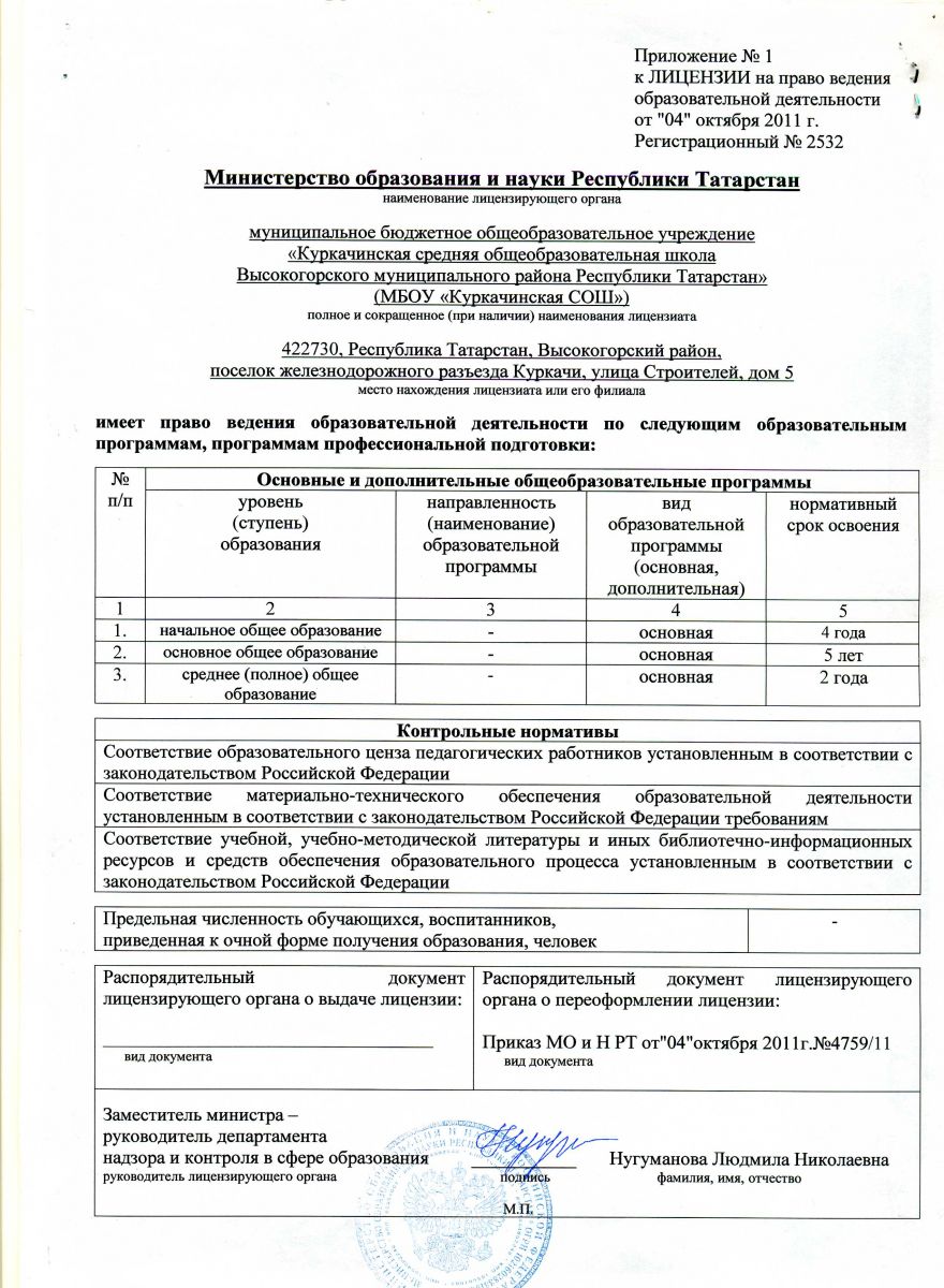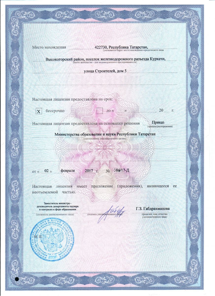 ЛИЦЕНЗИЯ НА ПРАВО ВЕДЕНИЯ ОБРАЗОВАТЕЛЬНОЙ ДЕЯТЕЛЬНОСТИ (оборотная сторона)