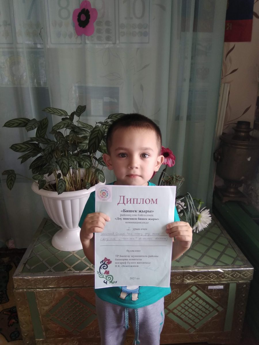 Опубликовано: 17.02.2021Семья Шайхиевых приняли участие в районном конкурсе "Бишек җыры" и стали победителями в номинации "Дәү әниемнең бишек җыры".