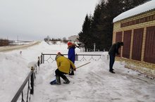 Бүген 6 нчы сыйныф укучылары һәйкәл янын кардан арындырдылар, “Кар десанты” акциясе үткәрделәр.